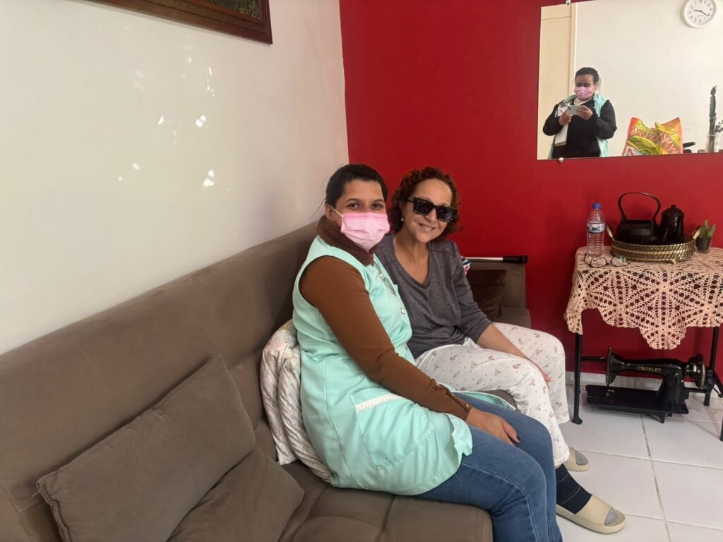 A equipe técnica da ABRAPEC – Unidade Atibaia realizou uma visita domiciliar a uma assistida em tratamento oncológico, levando acolhimento, orientação e apoio social. A ação foi conduzida pela orientadora social Pamela Santos e pela assistente social Thaina Lima, que ofereceram escuta atenta, suporte emocional e entregaram uma cesta básica, contribuindo para a melhoria da qualidade de vida da paciente e de sua família.